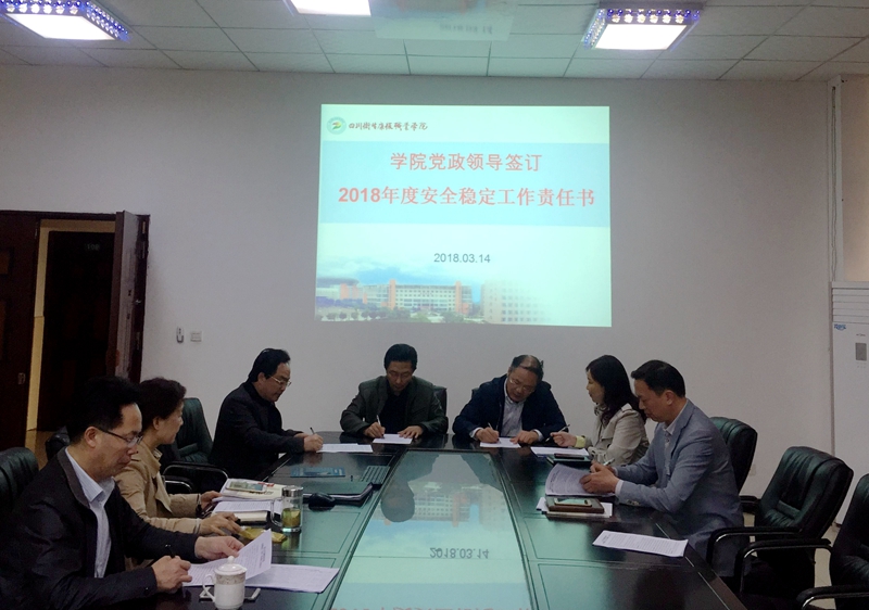 为贯彻落实全国学校安全工作电视电话会议及省、市安全工作会议精神,进一步加强和规范学院安全管理,建立健全维护校园稳定工作长效机制,3月14日,我院教职工签订了《2018年学院安全稳定工作责任书》。