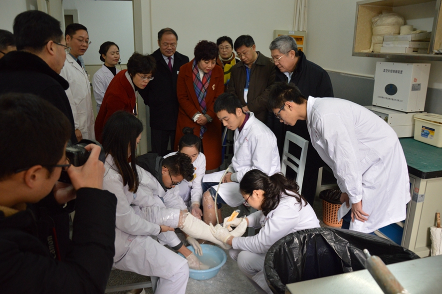 汇报会后,评估专家分两个组,考察了梵恩诗校企合作共建实训室、物理治疗实训室、解剖实训室等校内实验实训基地;考察了附属自贡市第四人民医院、附属自贡市第一人民医院,学院新校区项目建设现场。当天上午现场考察结束后,专家组还访谈了中层干部3人;随机抽选了康复治疗技术专业课程《作业治疗技术》进行听课。
