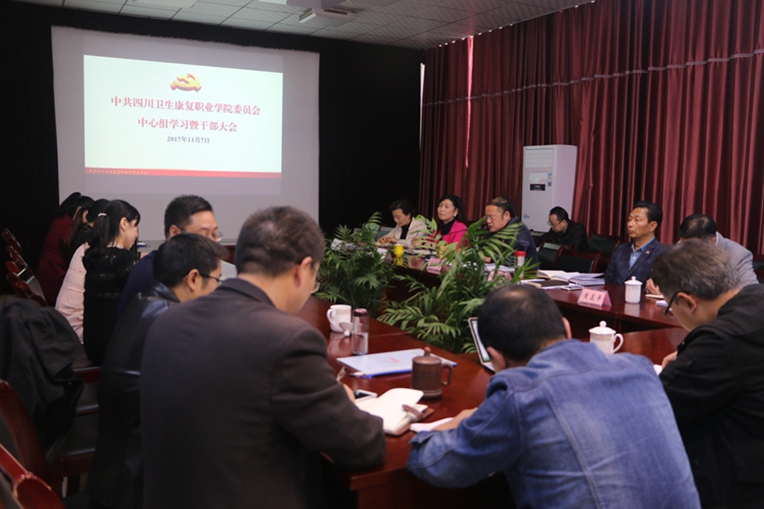 党委副书记、院长曾晓奇首先传达了市委10月30日学习贯彻十九大会议精神及市领导讲话内容,并结合学院工作谈了自己的学习体会,他谈到一个国家、一个政党必须要靠先进的理论武装,习近平总书记新时代中国特色社会主义思想是我们国家、我们党理论的灵魂,我们一定要深刻领会和把握“新时代”的思想精髓;我们党以十九大为标识,向全世界宣誓中国进入新时代,我们要在新时代有新作为、新面貌、新举措,进一步厘清工作思路、工作方向和着力点,不仅要努力达到建成“独具特色、西部一流、全国知名的现代化创新型医药卫生类高职院校”的要求,还要争取实现更高的目标。