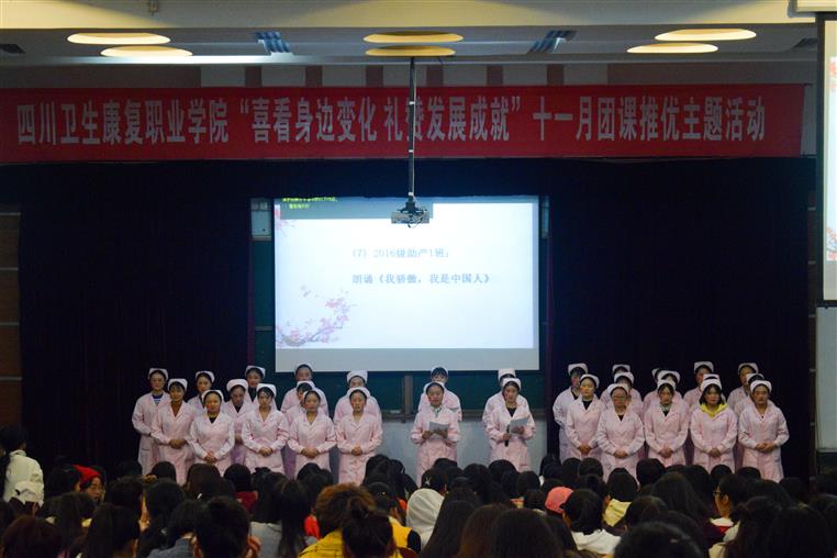 为学习宣传党的十九大精神,准确领会习近平总书记新时代中国特色社会主义思想的丰富内涵,更加扎实推进思想政治教育,我院于11月17日下午在A113阶梯教室开展了以“喜看身边变化礼赞发展成就''为主题的大型团课推优活动,学生会组织部、2016级助产1班等10个团支部共计400余人参加本次活动。