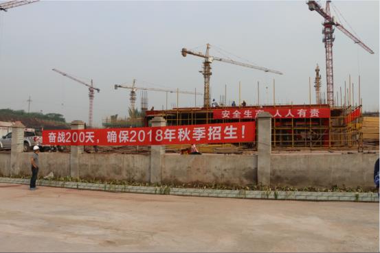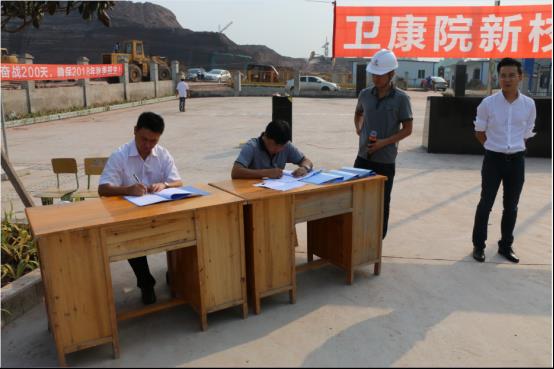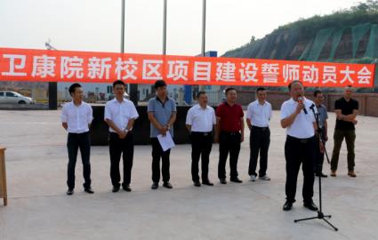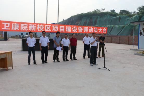 9月13日上午9时,学院新校区现场国歌高奏,市卫生计生委、学院,汇东股份建设方、施工方,市规划设计院、远建设计院,兴旺监理公司、江阳监理公司约300名建设者齐集项目部现场举行誓师动员大会,宣誓言、表决心、速推进,以达目标——奋战200天,确保2018年秋季招生。