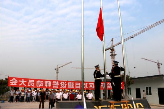 升旗仪式后,汇东股份总经理邹阳作“振奋精神鼓干劲,大战200天确保项目圆满完工''主题动员讲话,设计、施工和监理方代表做保证质量、保证安全、保证项目按时完工宣誓。建设方分别与施工方、勘察设计单位、监理签责任书,立“军令状''。