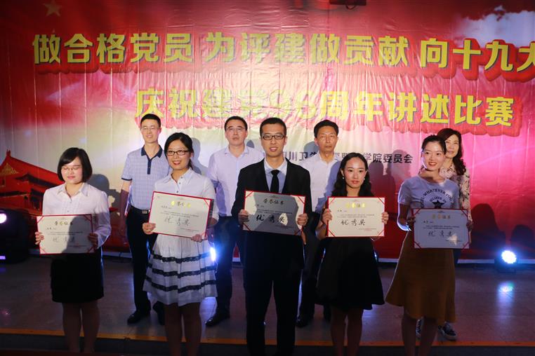 经过评委的综合评分,陈佳同志获得一等奖,李琳蔚同志、附属四医院党委廖欢同志获得二等奖,周敏同志、附属一医院党委杨玲同志、倪琳杰同志获得三等奖,另有五位同志获得优秀奖。在激烈的掌声中,学院领导为获奖同志颁发了荣誉证书。