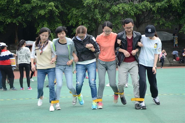 本次运动会比赛项目趣味性十足,主要体现在两个方面:一是各参赛队伍的名称及口号充满趣味性,10个工会片区都为自己取了活泼有趣的队伍名称和口号,如学工片区叫做“阳光队'',口号是“招之即来(招生),来之能管(学管),团团包围(团委),保君平安(保卫),衷心职守(中职),经济实用(实习),乐业心安(就业);''医技片区叫做“欣欣向荣队'',口号为“医技一出,谁与争锋,横扫赛场,为我称雄'';附属一医院工会叫做“亮剑队'',口号为“亮剑出击,勇争第一'';附属四医院工会叫做“超越队'',口号为“挑战自我,超越自我'';二是比赛项目花样多,趣味性强,涵盖了包括“毛毛虫竞速、运转乾坤、珠行万里、袋鼠跳、巨人脚步、击鼓颠球、背夹球''在内的七个项目。