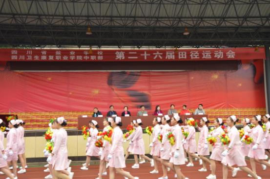 11月8日,四川卫生康复职业学院中职校区花团锦簇,彩旗招展,以“我的青春·我的校园·我的祖国”为主题的2016年秋季田径运动会在省盐校中职校区开幕。此次运动会由我院中职部与省盐校共同举办。学院党委副书记、纪委书记李华,学院副院长罗天蔚以及省盐校各领导出席了开幕式。