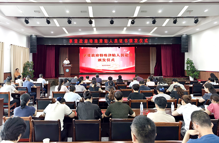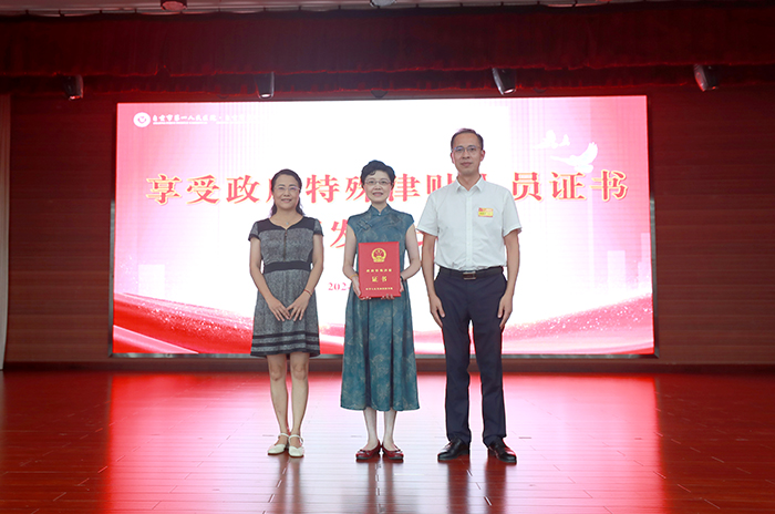 9月12日,我校附属医院举行享受政府特殊津贴人员证书颁发仪式,市人力资源社会保障局党组成员、副局长龙承春,医院党委书记倪志勇共同为获此殊荣的眼科主任李爽乐颁发了证书。医院班子成员,各级党组织书记,各临床医技、行政职能科室负责人共同见证了这一荣耀时刻。仪式由党委副书记殷明刚主持。
