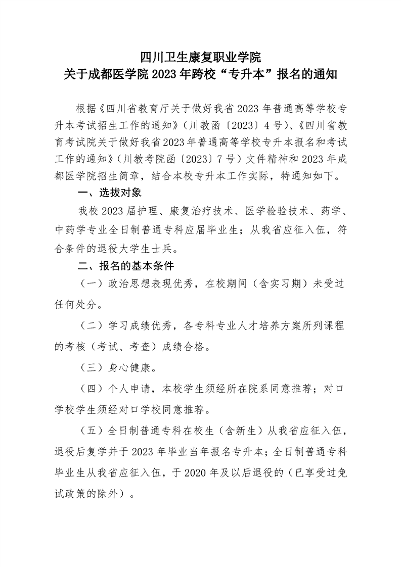 下一条:四川卫生康复职业学院 关于西南医科大学2023年跨校“专升本”报名的通知