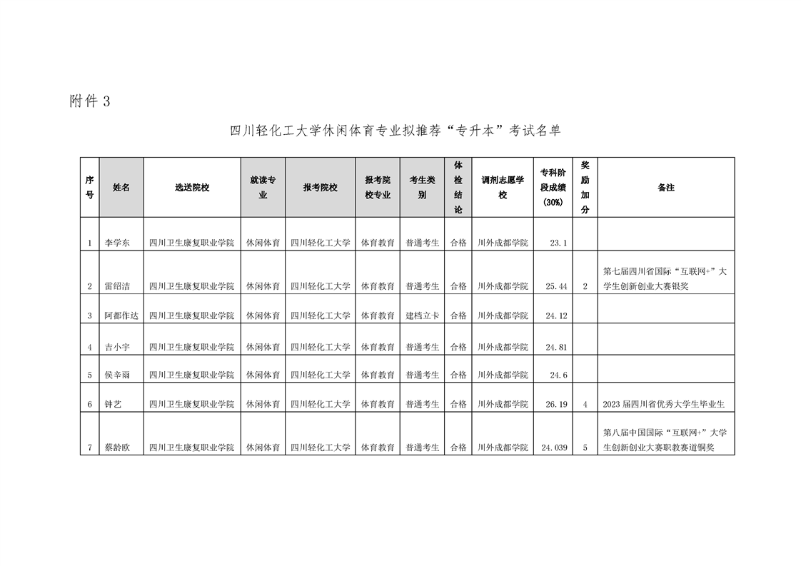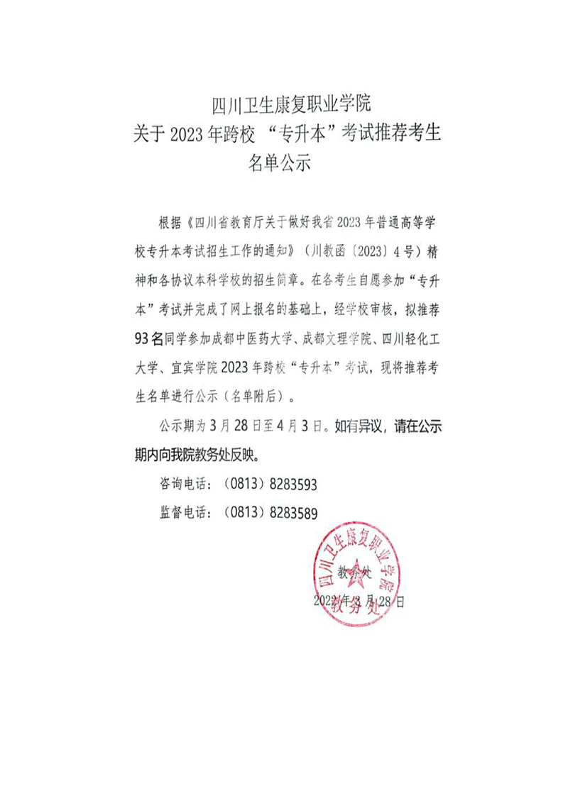 上一条:四川卫生康复职业学院关于2023年专升本推荐考生名单公示(西南医科大学)