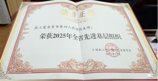 近日,农工党自贡市第四人民医院支部获评“2025年全省先进基层组织”。该支部在参政议政、民主监督、社会服务等方面积极履职,尤其在服务健康自贡建设、参与疫情防控、开展医疗支援等重点工作中发挥了重要作用。