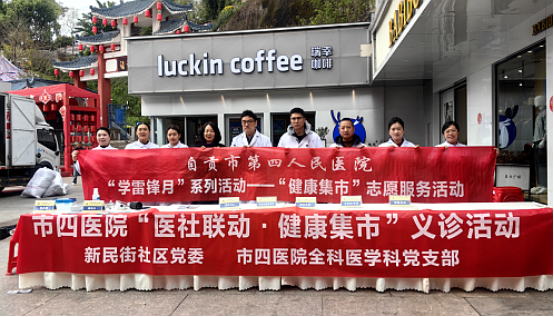 近日,市四医院联合新民街社区党委,在东方广场开展“医社联动,健康集市”义诊志愿服务活动。