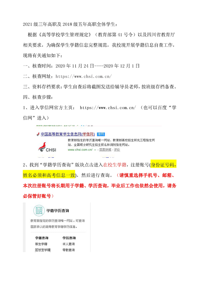 关于开展2021级三年高职及2018级五年高职新生学籍自查工作的通知