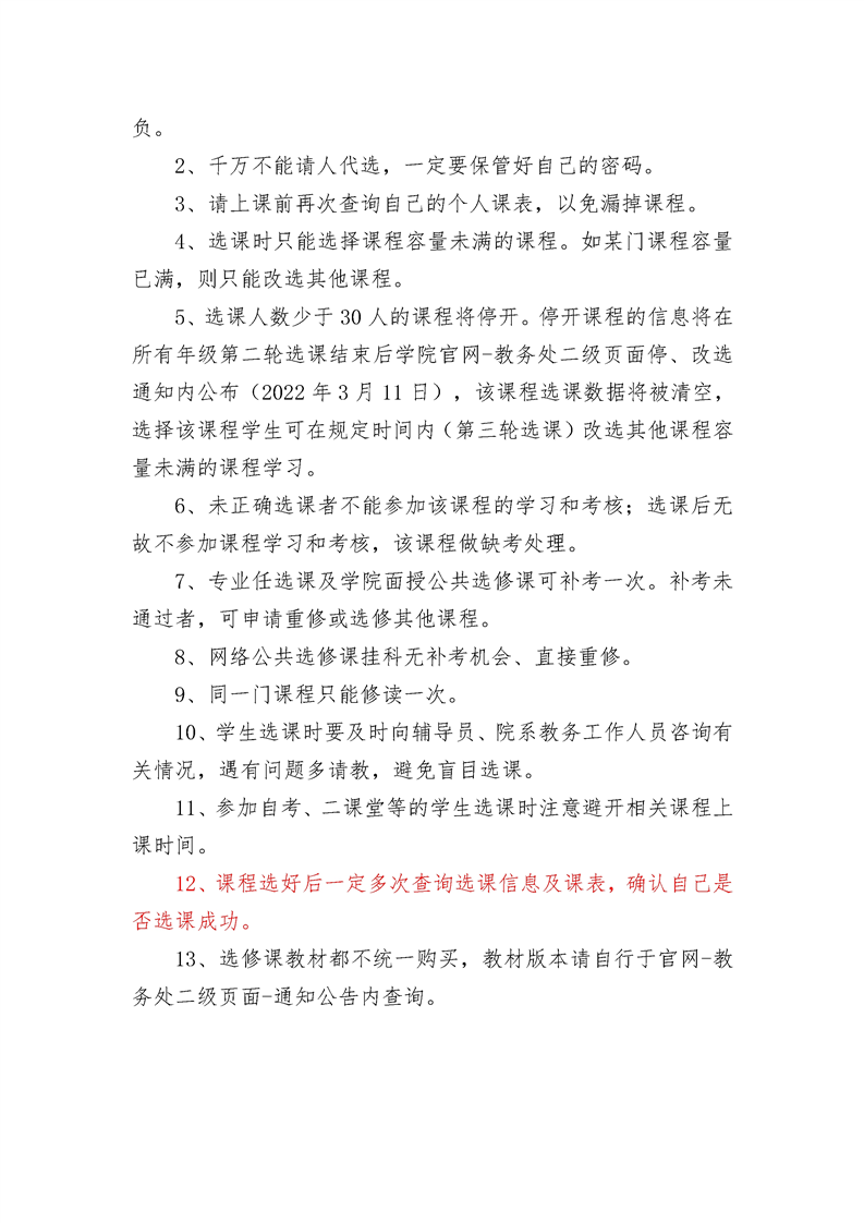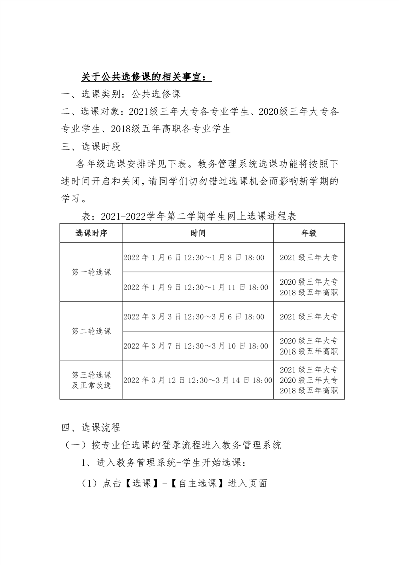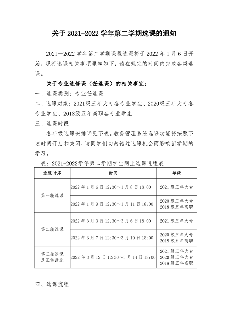 关于2021-2022学年第二学期选课的通知