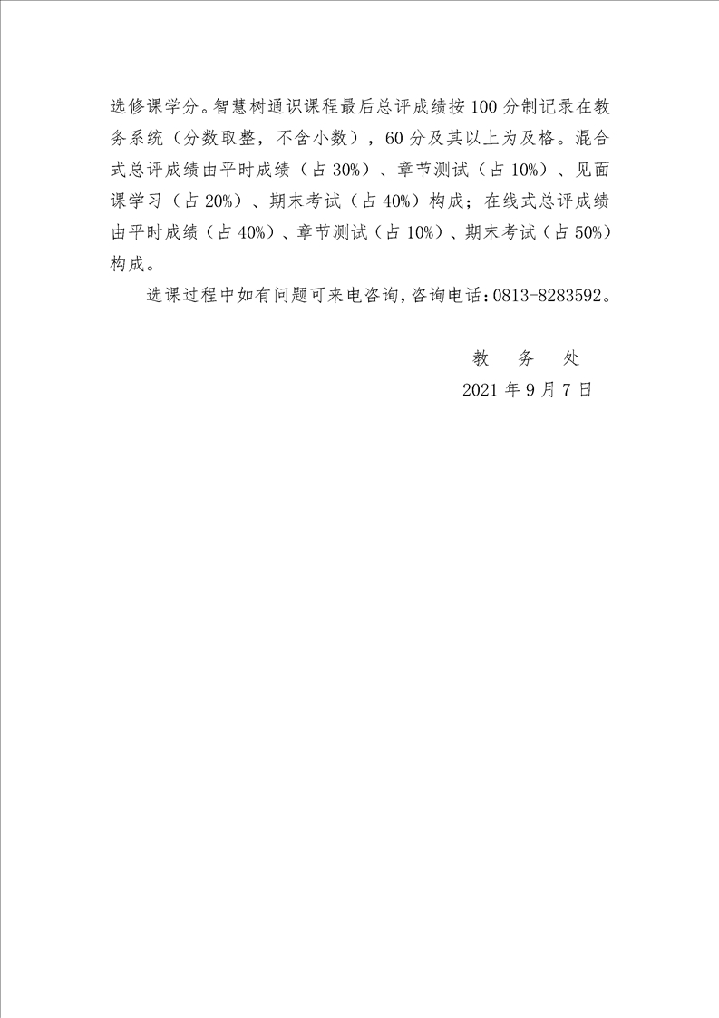 关于 2021-2022 学年第一学期选修课选课的通知