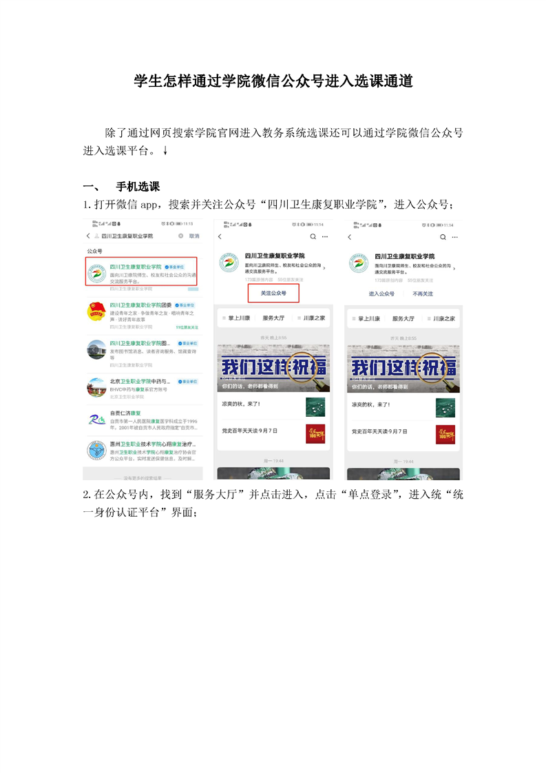 学生怎样通过学院微信公众号进入选课通道