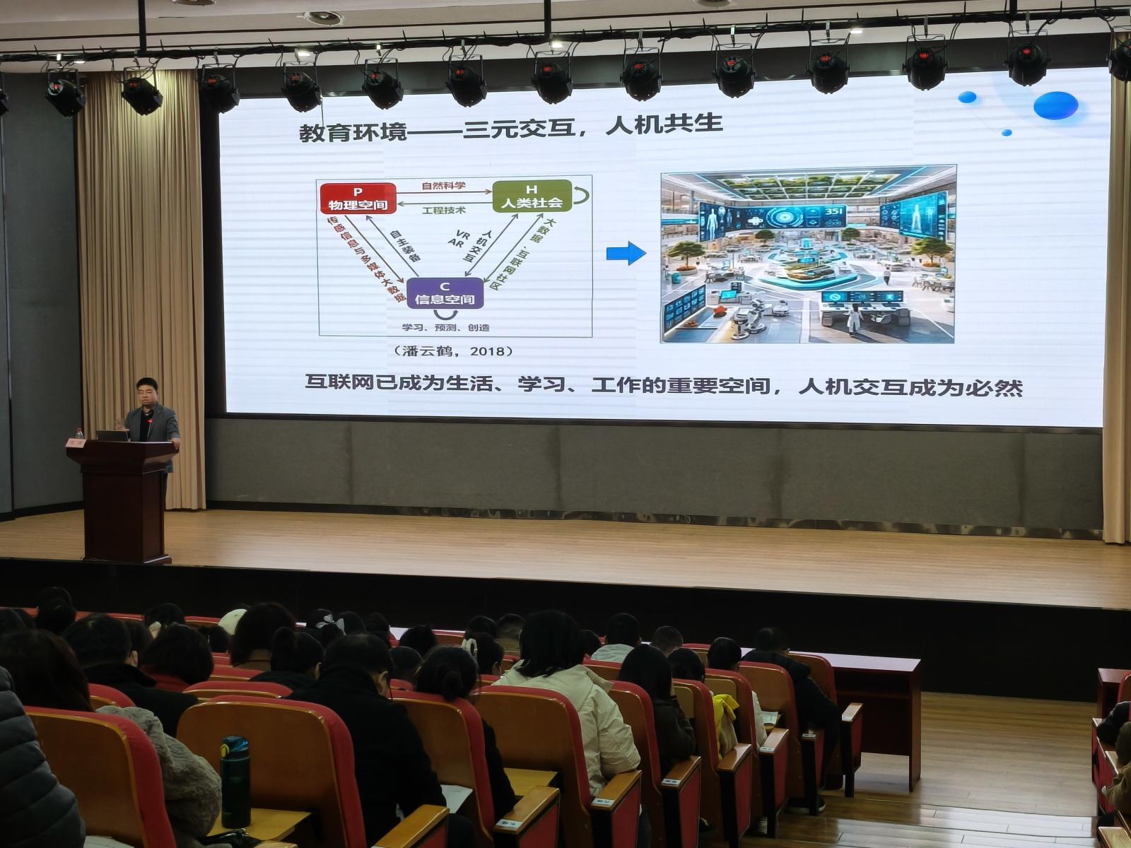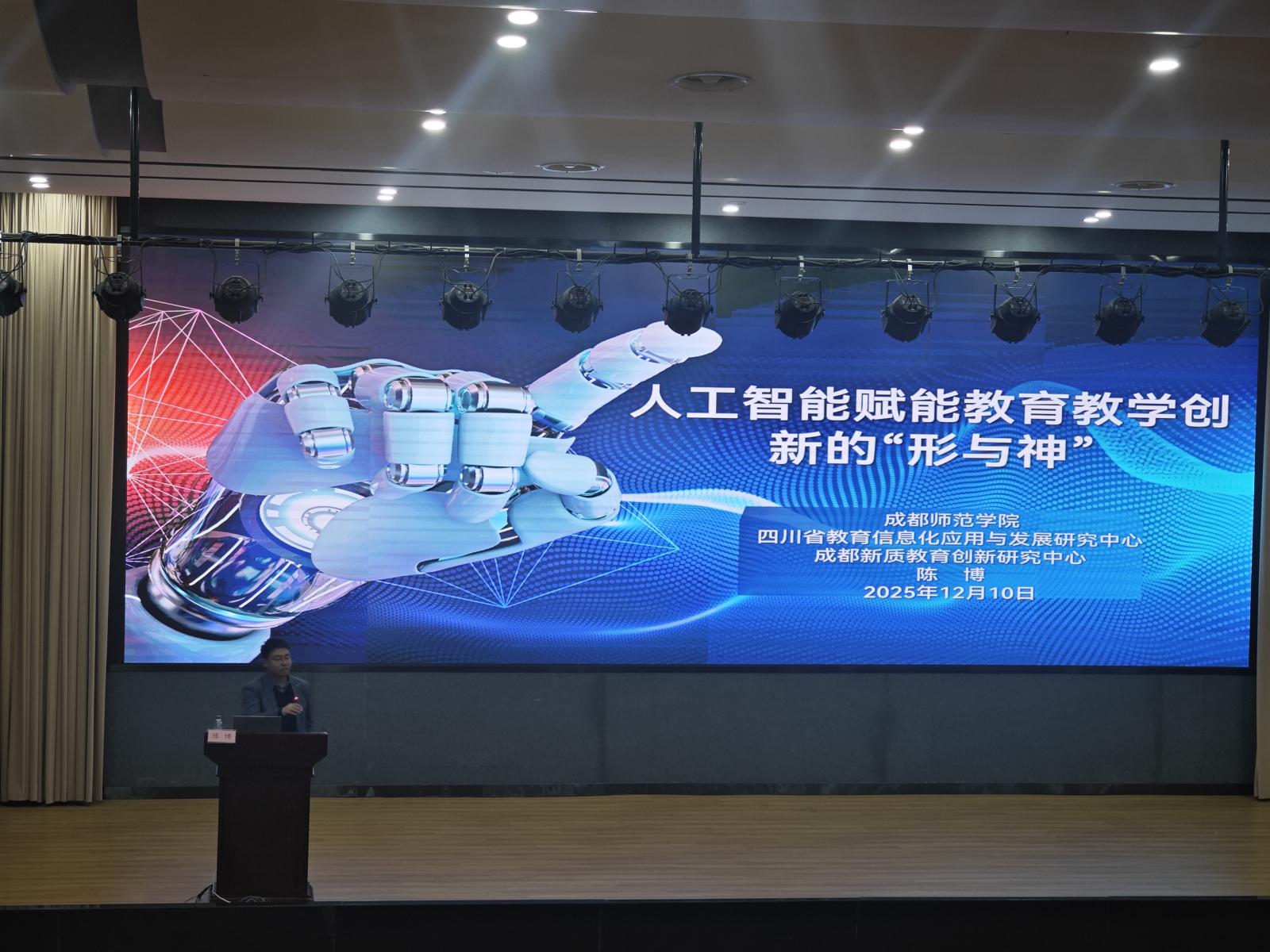 为提升教师数字素养,深入推进人工智能赋能教育教学改革,切实提高教学质量。2025年12月10日,学校邀请成都师范学院陈博老师在3-C209开展了“星火教研工作坊——人工智能赋能教育教学创新的形与神”专题培训会,全校专任教师参加。