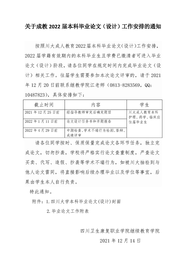 关于成教2022届本科毕业论文(设计)工作安排的通知
