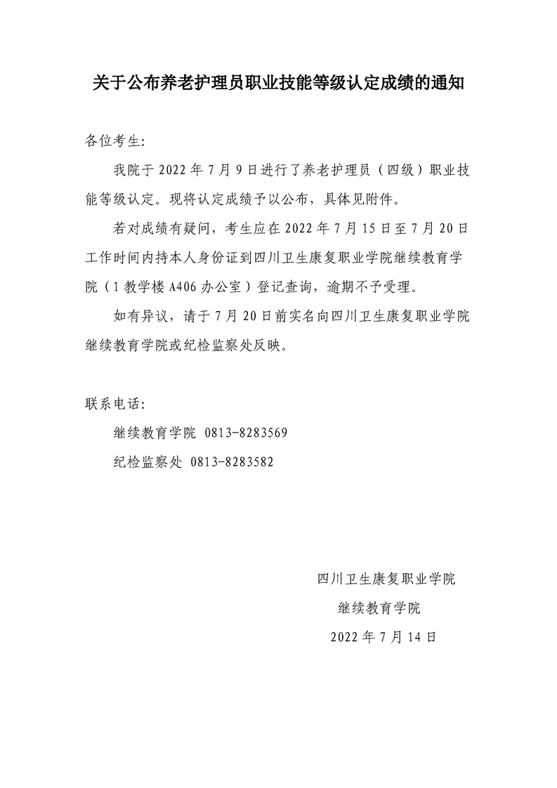 四川卫生康复职业学院2022年7月9日四级养老护理员等级认定成绩.rar