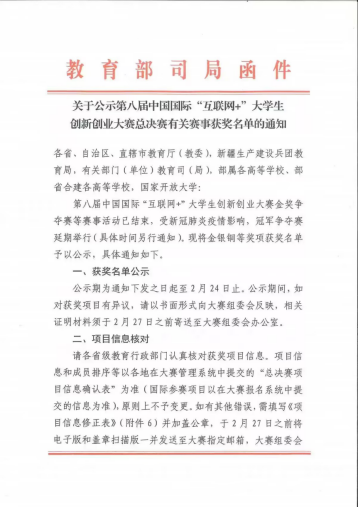 近日,由教育部等12个部门主办的中国国际大学生创新大赛(原中国国际“互联网+”创新创业大赛)公示了国赛获奖名单,由我校教育体育学院江燎、周扬静、张晓璐三位老师指导的《Emax-l“衣”触即发——微电流脉冲训练装备的引领着》项目最终斩获国赛铜奖。这也是教育体育学院连续两年获得国赛铜奖好成绩。