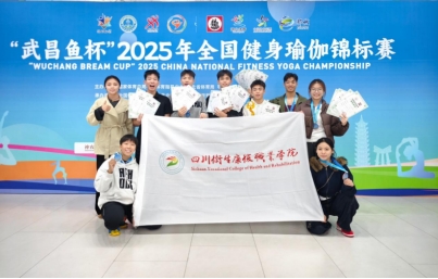 在“武昌鱼杯”2025年全国健身瑜伽锦标赛中,我院休闲体育专业、健身指导与管理专业学生组成的代表队表现优异,荣获团体一等奖,男单及混双二等奖、女双三等奖,并包揽优秀体式奖、编排创意奖与最美团队奖三项特别荣誉。