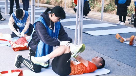 赛事期间,学院选派2名专业带操员,以标准规范、活力四射的动作,带领运动员科学热身和放松,有效降低运动损伤风险;派出9名经验丰富的裁判,严守规则、公正执裁,保障比赛公平有序;组织30名志愿者开展拉伸服务,他们耐心细致、热情周到,为运动员提供贴心服务,成为赛场上一道暖心的风景。