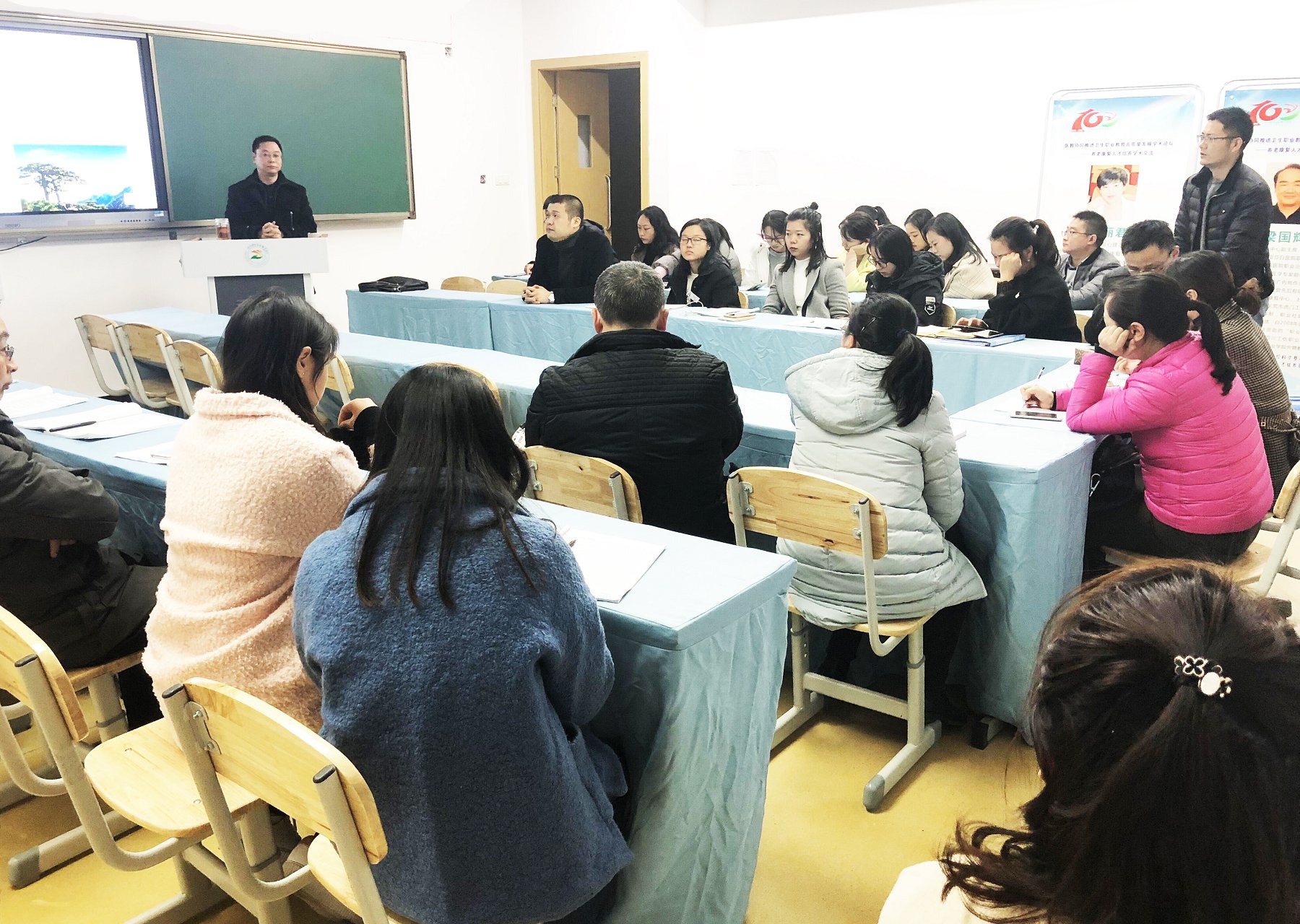 11月20日晚,康复系在1-A104组织召开了深入学习《医教协同推进卫生职业教育高质量发展学术论坛——主旨报告》座谈会。会议由康复系主任章荣主持,来自学院及附院的康复系教学管理人员及全体专兼职教师约40人参加了会议。