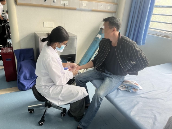 2025 年 7 月 14 日至 9 月 1 日,先禹桥参与运动治疗期间,全程随带教老师助力偏瘫阿姨康复。阿姨初时上下肢肌张力高,无法独立站立步行,手部功能受限。他与老师制定并实施系统训练方案,出科时阿姨肌张力降低,能独立平稳站立步行,日常活动基本自主。这让他体会到康复意义,更坚定深耕决心。