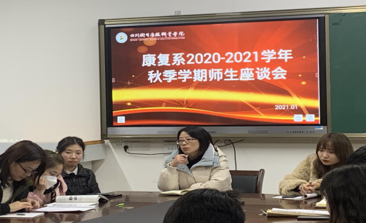 为提高教育教学质量,促进专业建设,强化学生管理,1月6日下午4点,康复系在1号楼A104召开本学期康复系师生座谈会。此次座谈会由康复系党支部宣传委员卫琛主持,康复系副主任孙天聪、康复系各教研室教师代表、康复系全天辅导员以及30名学生代表参会,共同就教育教学、学生管理等相关问题展开了探讨。