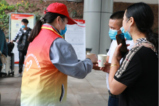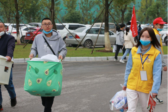 为不耽误迎接新生赶紧匆忙吃饭的志愿者