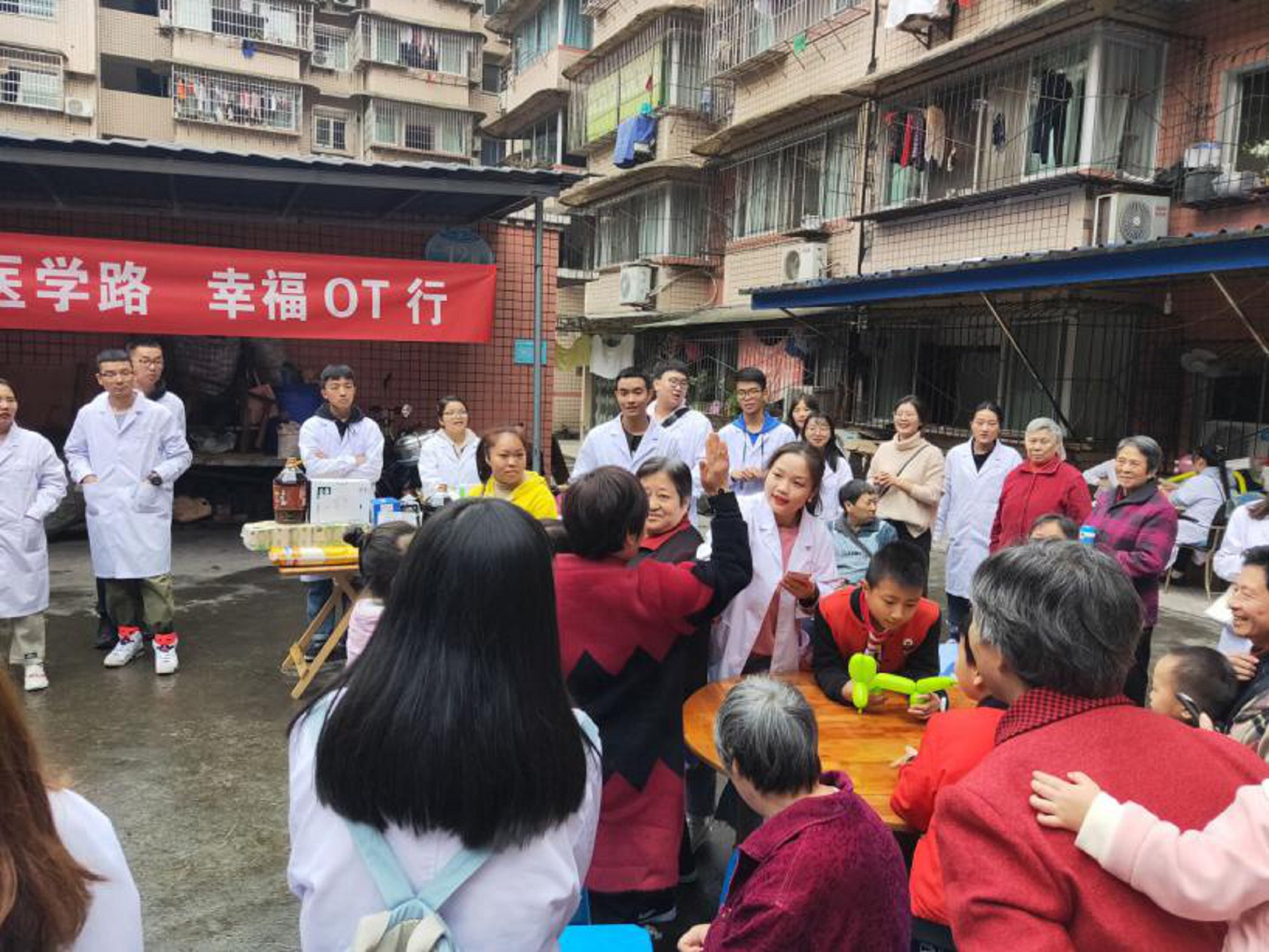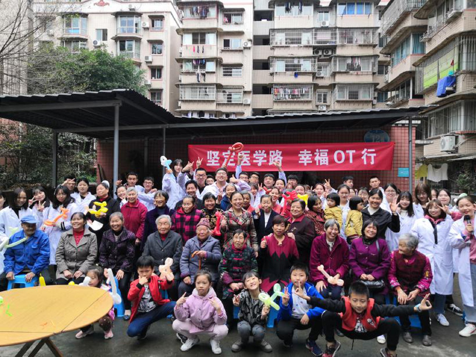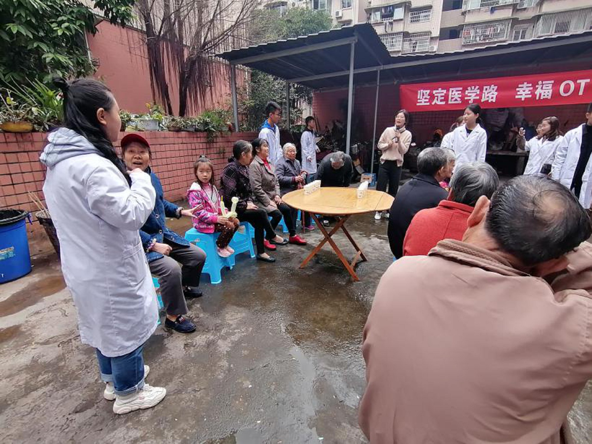 2019年10月27日是“世界作业治疗日”,18级康复治疗技术作业治疗班的同学们,在作业教研室赵江老师的陪同下,来到了自贡市自流井区明珠社区,开展了康复作业治疗宣讲活动。