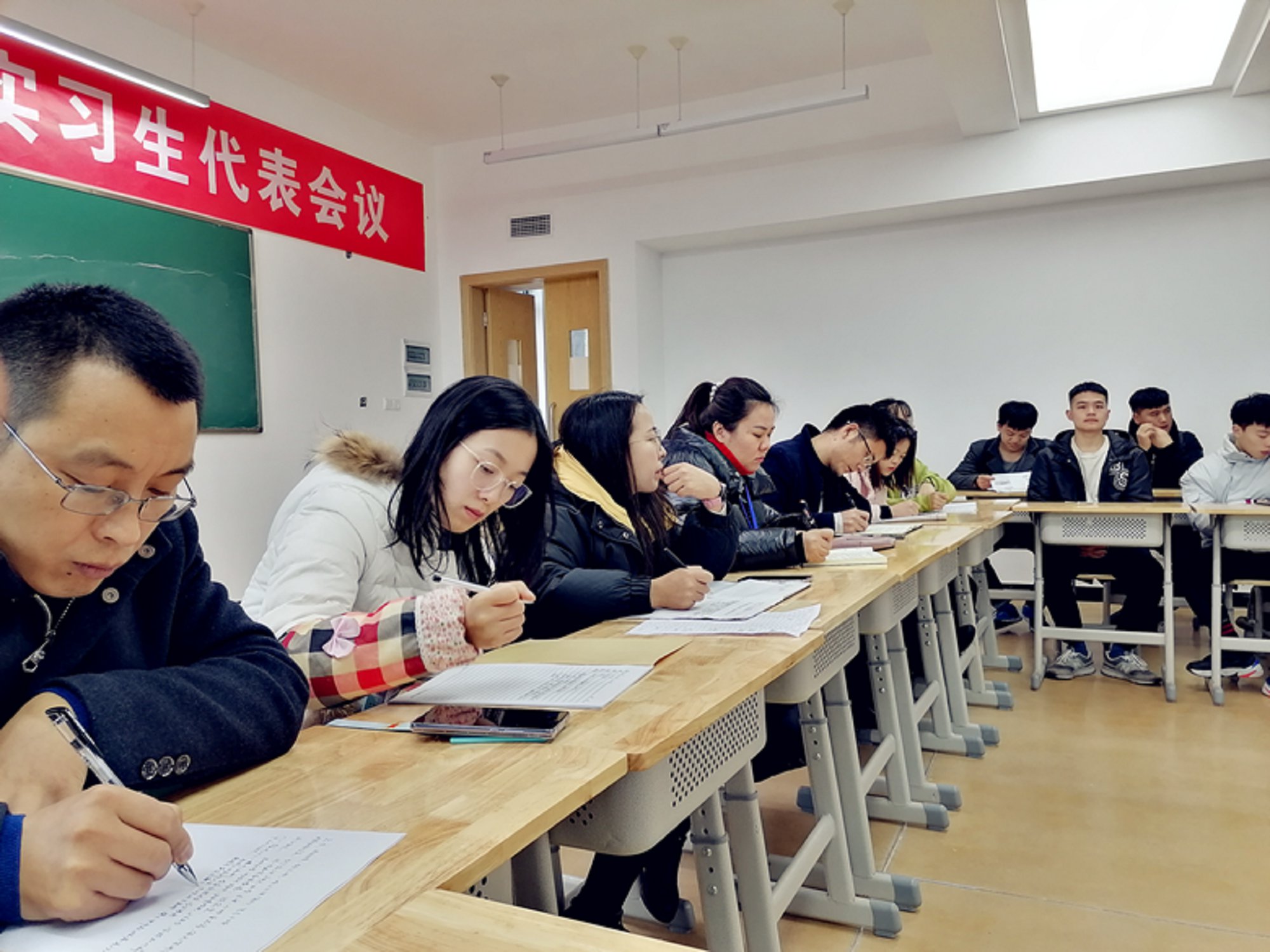 会议开始,各位同学针对自身的实习现状尽情地畅所欲言,反映实习期间生活和学习上的困难。兰州大学附属第二医院、广西壮族自治区江滨医院、华西医院、绵阳中心医院等单位实习的学生代表均反映,实习医院的康复发展水平好、分组细、实习带教管理好、带教老师负责,教学查房、出科考核、实习生小讲课等教学活动安排比较充实,实习期间在理论知识水平和实践操作技能方面都得到了很大的提升。同时,实习生代表也提出一些建议和意见,例如,在校期间学习还不够全面、不够扎实,同学们进入实习后还不能很快胜任工作岗位,需要很长一段时间的努力学习才能基本适应实习生活。希望学校能在同学们还在学校学习时再加强教学强度、力度,让同学们到了临床就能马上适应。针对同学们提出的意见和建议,各教研室的代表老师表示,实习本来就是在校学习的一个环节,是同学们将理论运用到实践的重要环节,是培养同学们临床思维、提升同学们实践技能的有效途径,是同学们查缺补漏的有效途径。因此同学们在实习期间还需要不断的去学习、不断的去努力,让自己在实习结束的时候能够成为一名基本合格的治疗师。