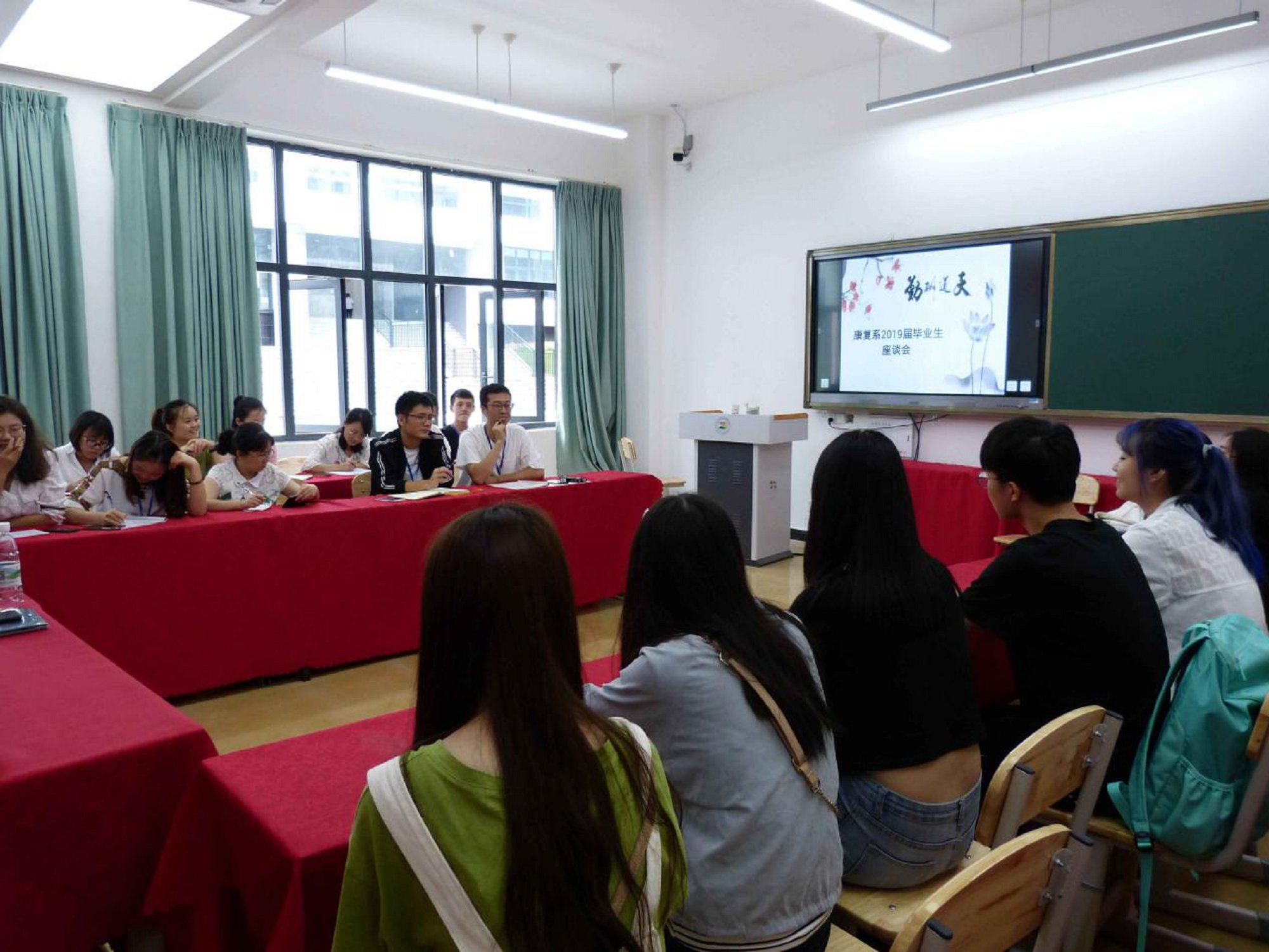 为提高教育教学质量,促进康复专业建设、发展,强化学生管理,促进毕业生就业质量,6月28日下午2点,康复系在1号楼A104召开了2019届毕业生座谈会,各教研室主任、教学干事、学工干事以及毕业生代表共四十余人参加。