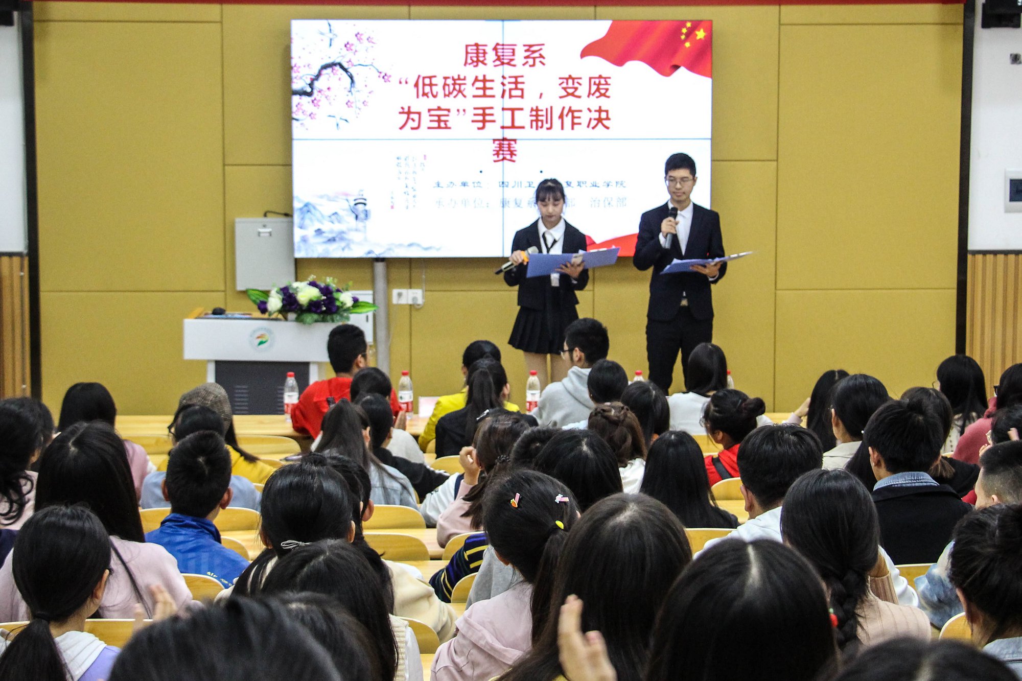 2019年10月23日下午,在康复系党支部的指导下,康复系学生会劳动部和治保部在四号教学楼D305举办了主题为“低碳生活,变废为宝”的环保竞赛活动。出席本此次活动的有康复系党支部常务副书记谭惠老师、康复系党支部宣传委员卫琛老师、学生管理处李静老师以及康复系学生150余人。