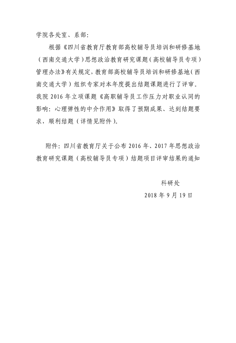 四川省教育厅关于公布2016年、2017年思想政治教育研究课题(高校辅导员专项)结题项目评审结果的通知.PDF