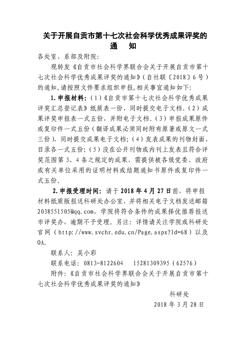 附件:自贡市社会科学联合会开展自贡市第十七次社会科学优秀成果评奖的通知.doc