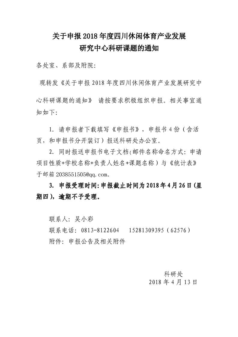 关于申报2018年度四川休闲体育产业发展 研究中心科研课题的通知