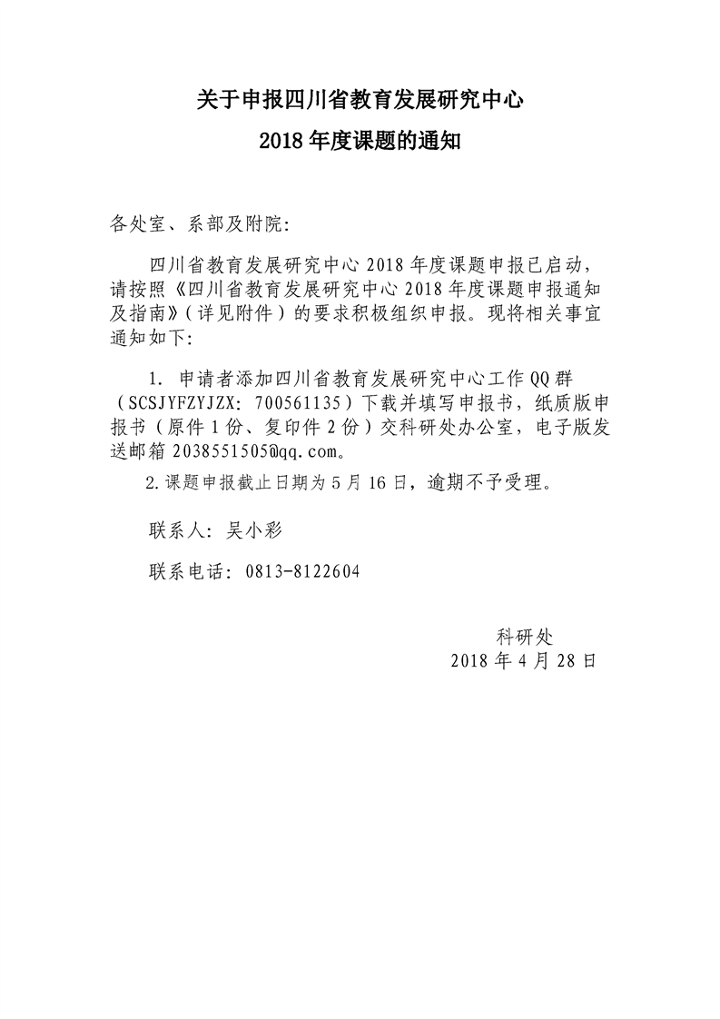 关于申报四川省教育发展研究中心 2018年度课题的通知