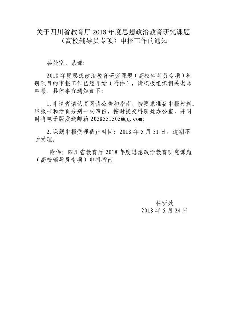 关于四川省教育厅2018年度思想政治教育研究课题(高校辅导员专项)申报工作的通知