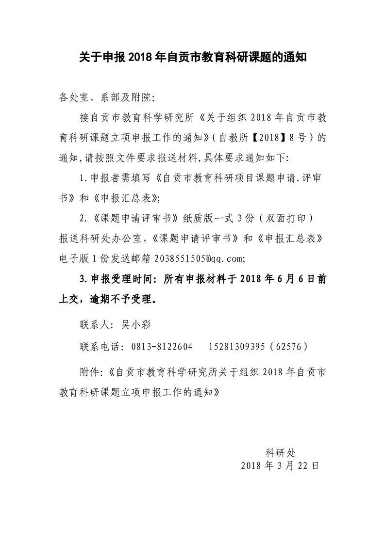 附件:(自贡市教科所)关于组织申报2018年自贡市教育科研课题的通知.doc