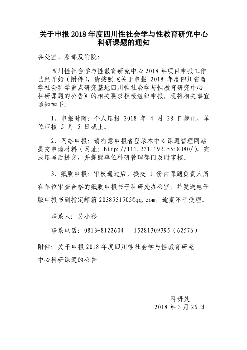 附件:关于申报2018年度四川性社会学与性教育研究中心科研课题的公告.pdf