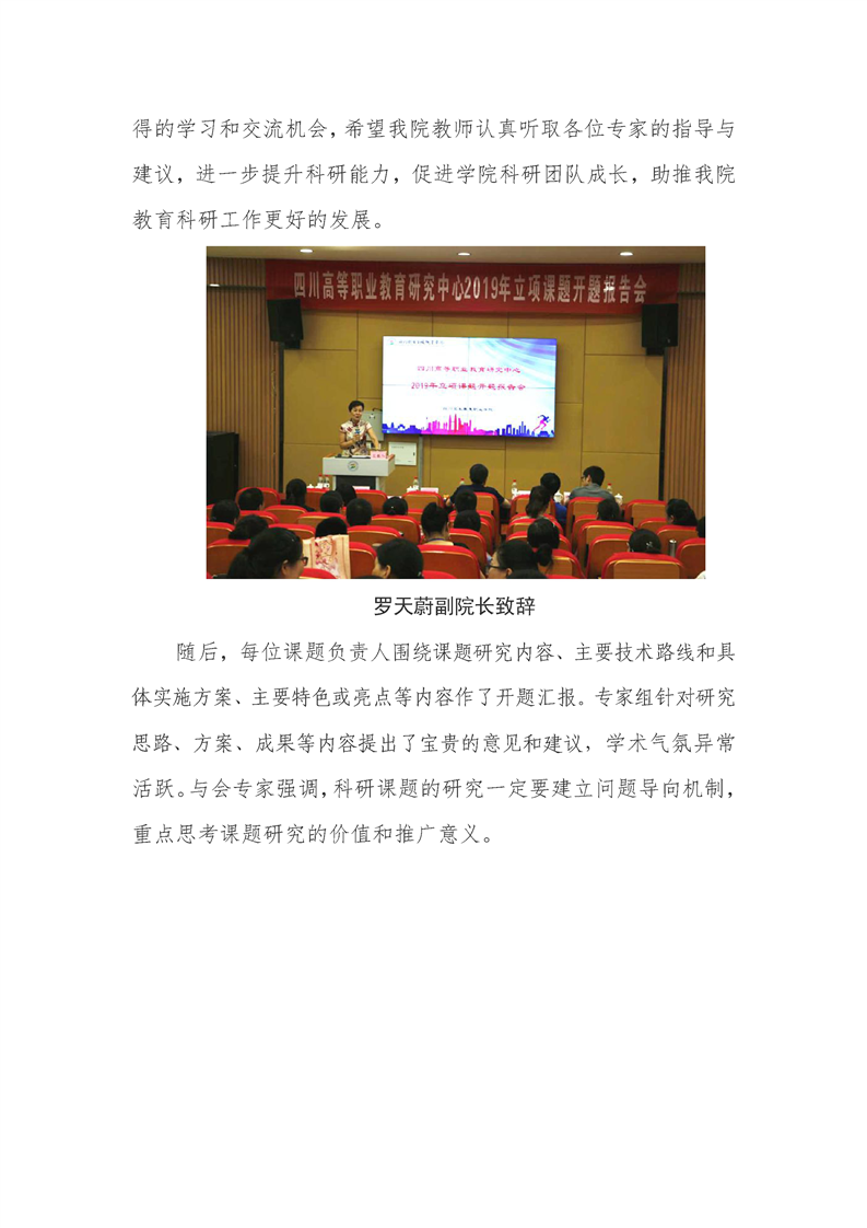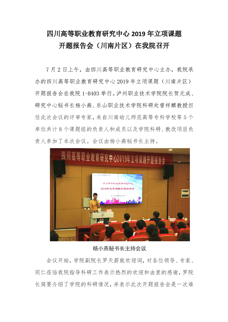四川高等职业教育研究中心2019年立项课题开题报告会(川南片区)在我院召开