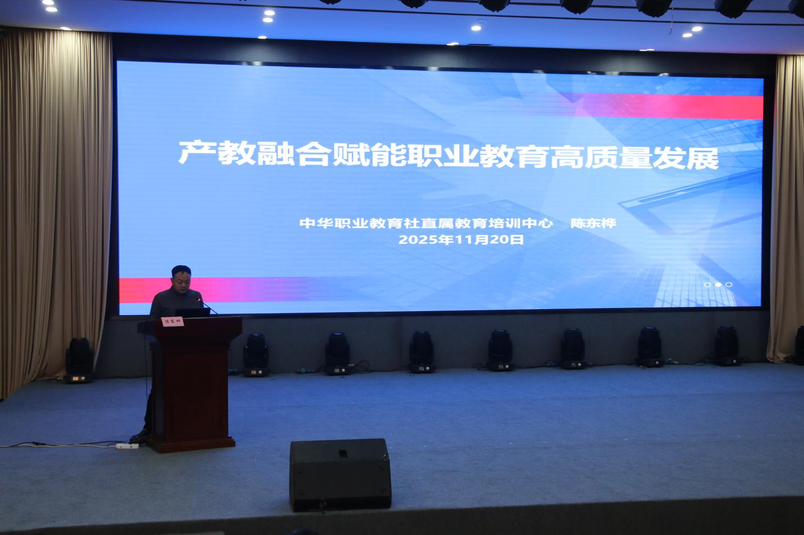 中华职业教育社直属教育培训中心副校长陈东桦以“产教融合赋能职业教育高质量发展”为主题分享案例和经验。陈校长指出要学习贯彻党的二十届四中全会精神,将国家“十五五”规划建议和教育强国建设规划纲要以及教育强国建设三年行动计划有效衔接,发挥共同体优势,积极开展政策和课题研究,开展人才需求预测和供需对接,培育供需匹配的产教融合服务组织,推进国际合作。积极组织开展行业企业专家研修和社会人员能力提升培训。倡导、研究、推行黄炎培“使无业者有业,使有业者乐业”职业教育思想,助力职业教育高质量发展。
