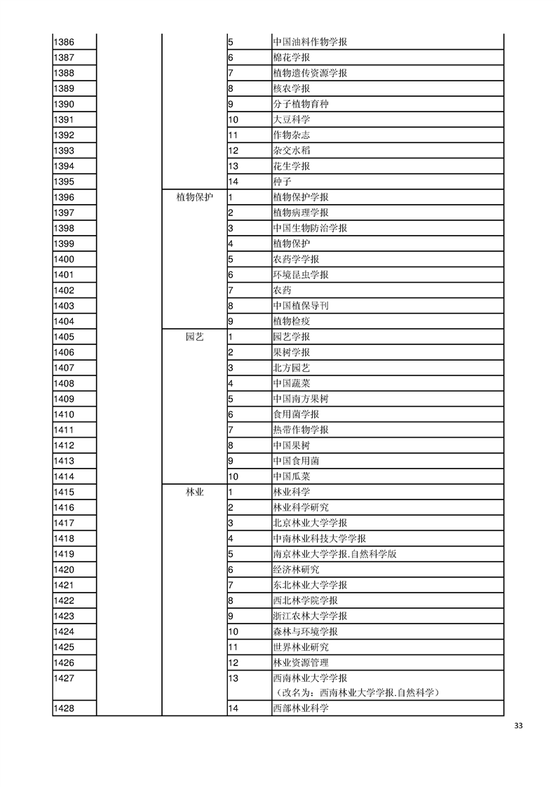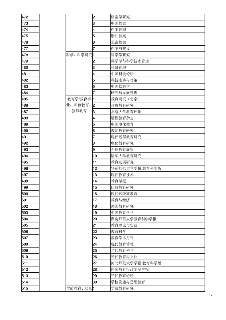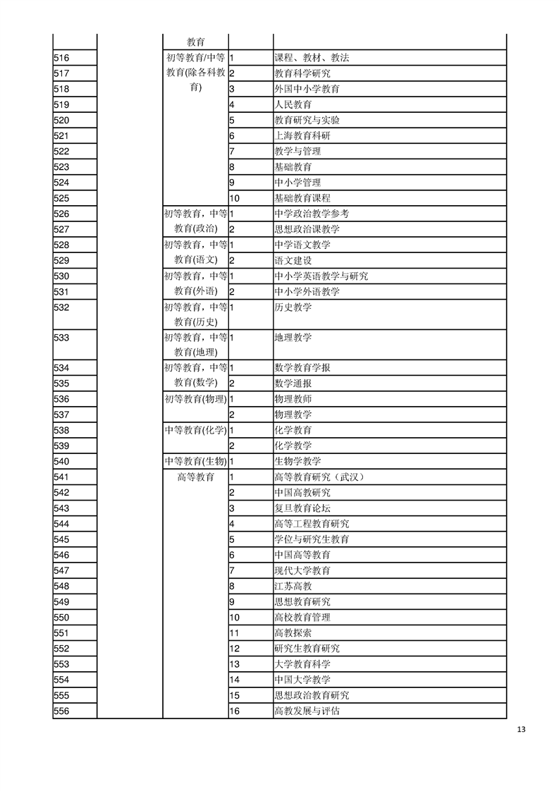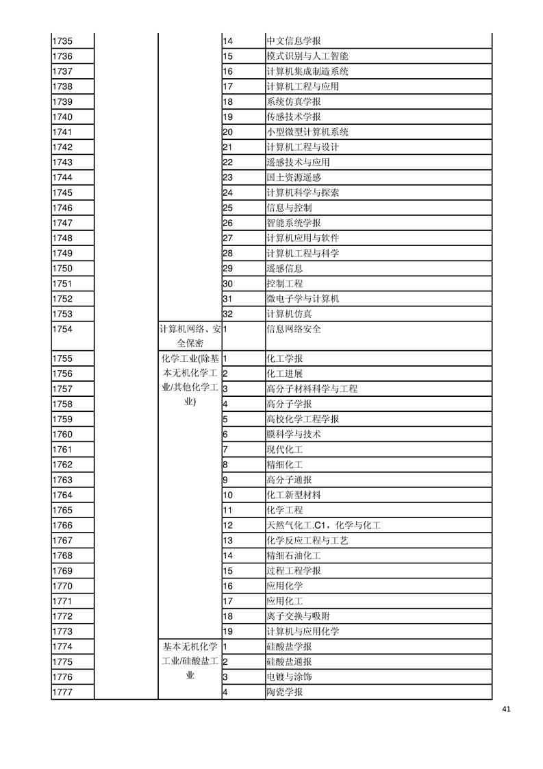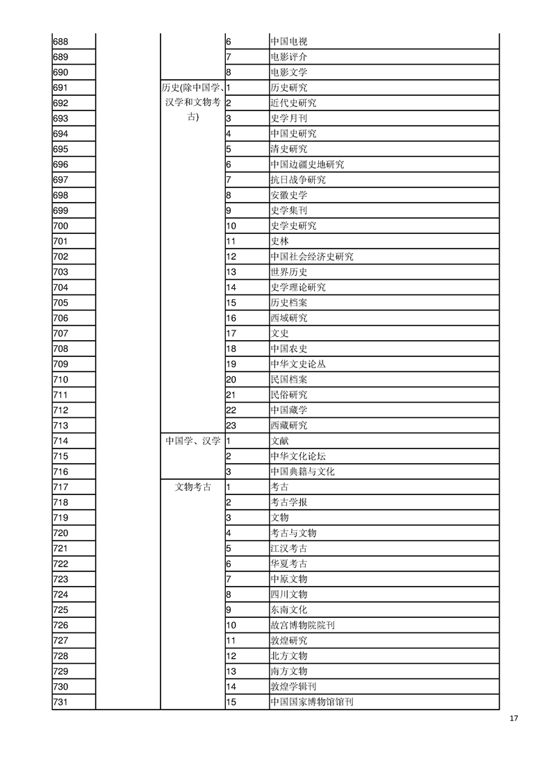 中文核心期刊目录(2017年版)