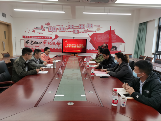 4月1日下午,汉中职业技术学院医学技术学院副院长闫新豪一行4人来我校交流学习。我系党支部书记刘文军、系党政办公室副主任秦志刚、教研室主任黄政在2-B313B会议室与来宾进行交流。会议由秦志刚主持。