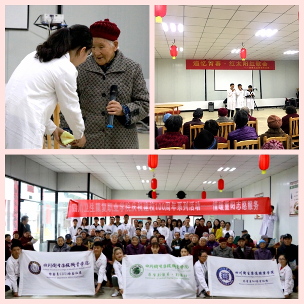 10月13日,学院药学社、影像社和检验社走进红太阳敬老院,开展九九重阳献爱心活动。