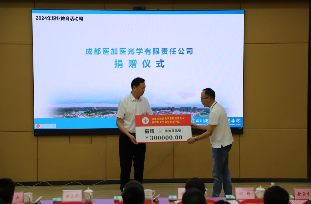 5月15日,四川卫生康复职业学院成都医加医光学有限责任公司眼视光技术产教融合实训基地揭牌暨捐赠仪式成功举行。