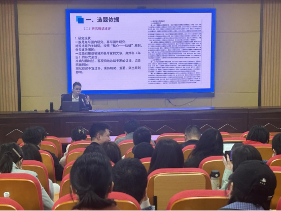 破题立论,搭建骨架。确定选题后就是破题,他从申报书的整体结构入手,一步步帮大家理清每一部分该怎么写、怎么支撑起整个研究的可信度,让论点“立得住”、让论证“行得通”。