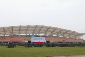 学院副院长黄昌平代表学院全体师生向莅临指导的各位领导表示由衷的感谢,同时希望同学在今后的学习中,以军人的标准严格要求自己。最后以热烈的掌声,向前来指导军训的全体教官致以崇高的敬意和衷心的感谢!