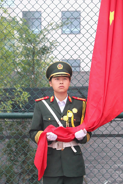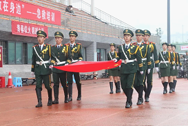 有人曾说:“青春有很多颜色,但我最爱的还是这身迷彩绿。”伴随着庄严的国歌声响起,鲜艳的五星红旗冉冉升起,全体师生行注目礼,军训汇报表演正式开始。