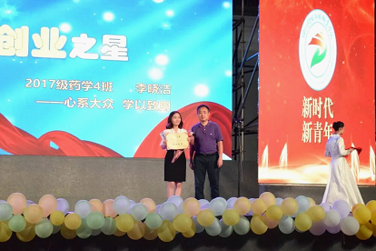 四川轻化工大学大学生科技园管理办公室副主任林海波为创业之星李晓洁颁奖。
