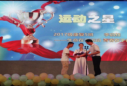 学院副院长黄昌平为运动之星李启柱颁奖。
